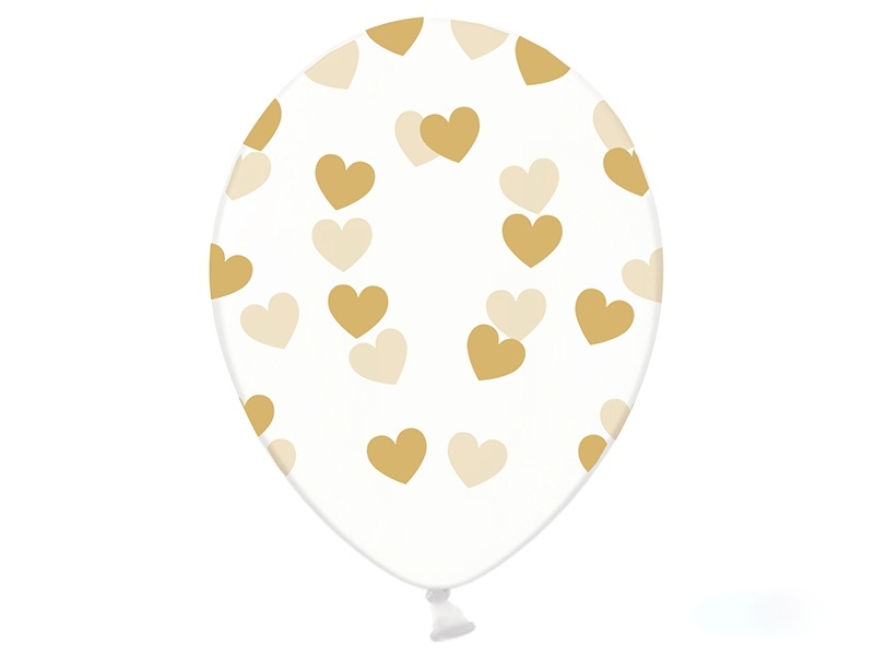 Kvalitný latexový balón priehľadný so zlatými srdiečkami.