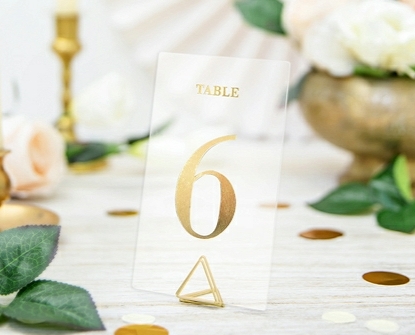 Transparentné kartičky na označenie stolov so zlatými číslami 1 - 20.
