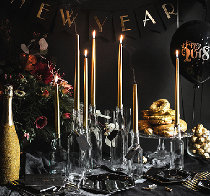 Sviečka kónická zlatá s metalickým leskom.