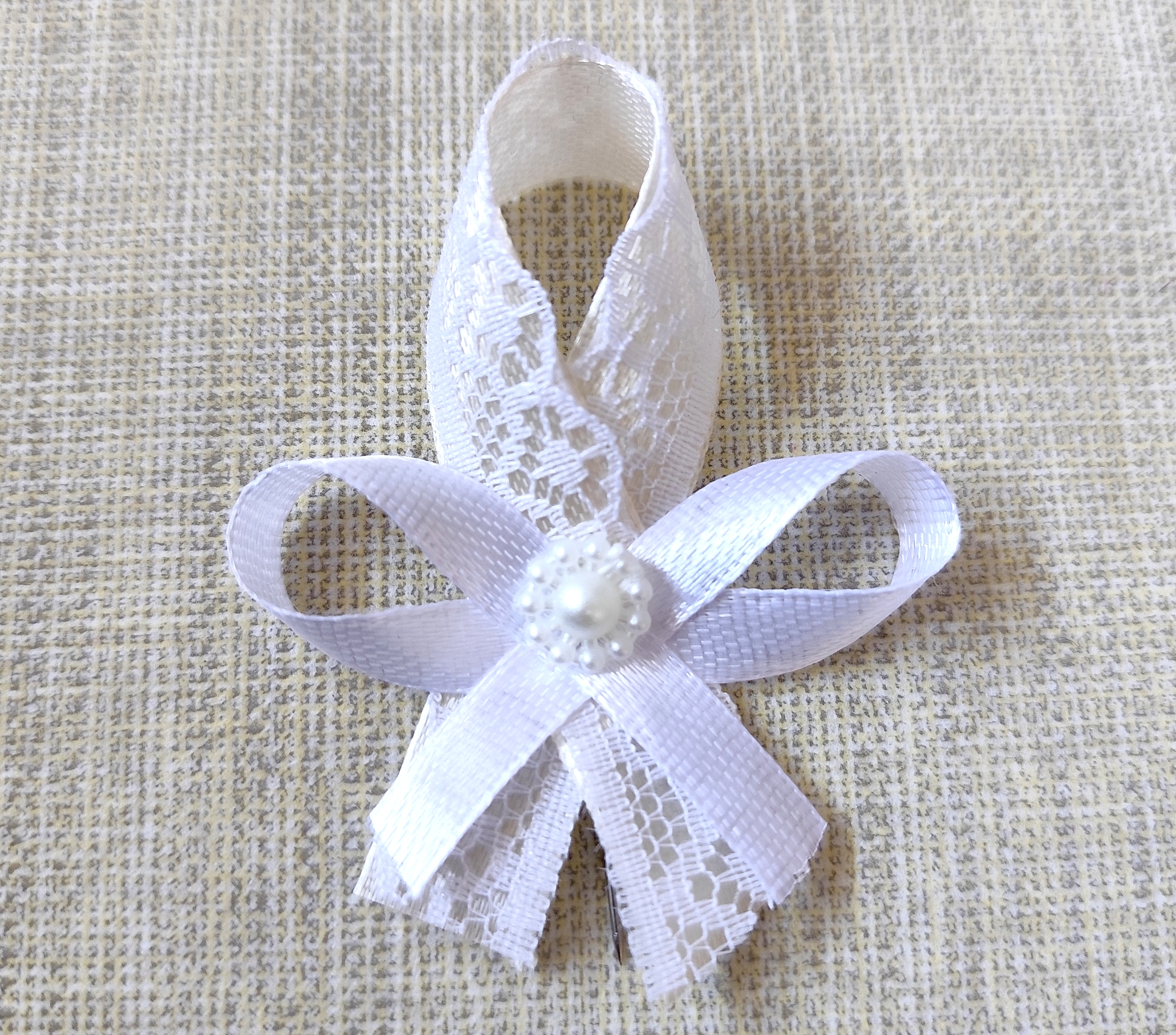 Svadobné pierko pre hostí krémové s perleťovým kvietkom.