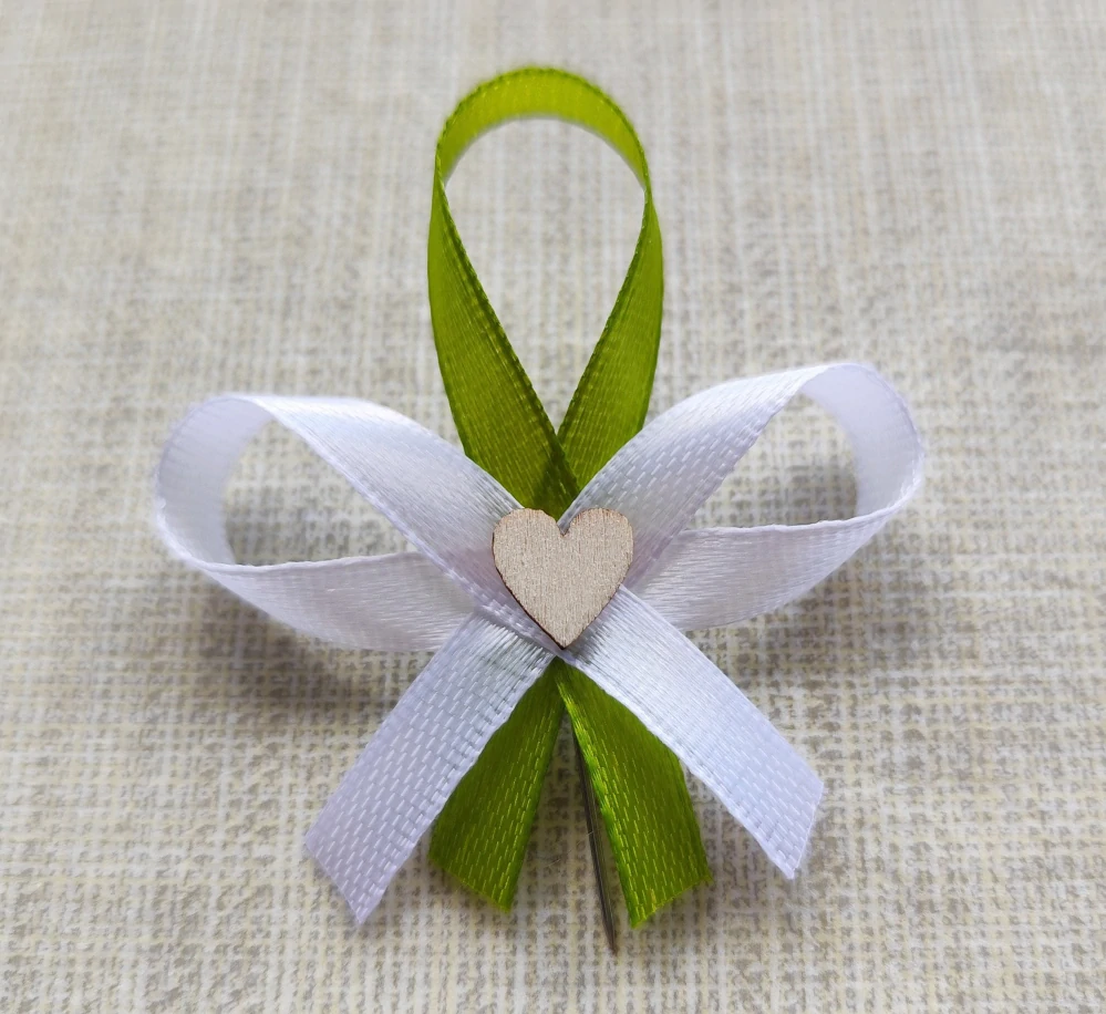 Svadobné pierko pre hostí svetlozelené s dreveným srdiečkom.