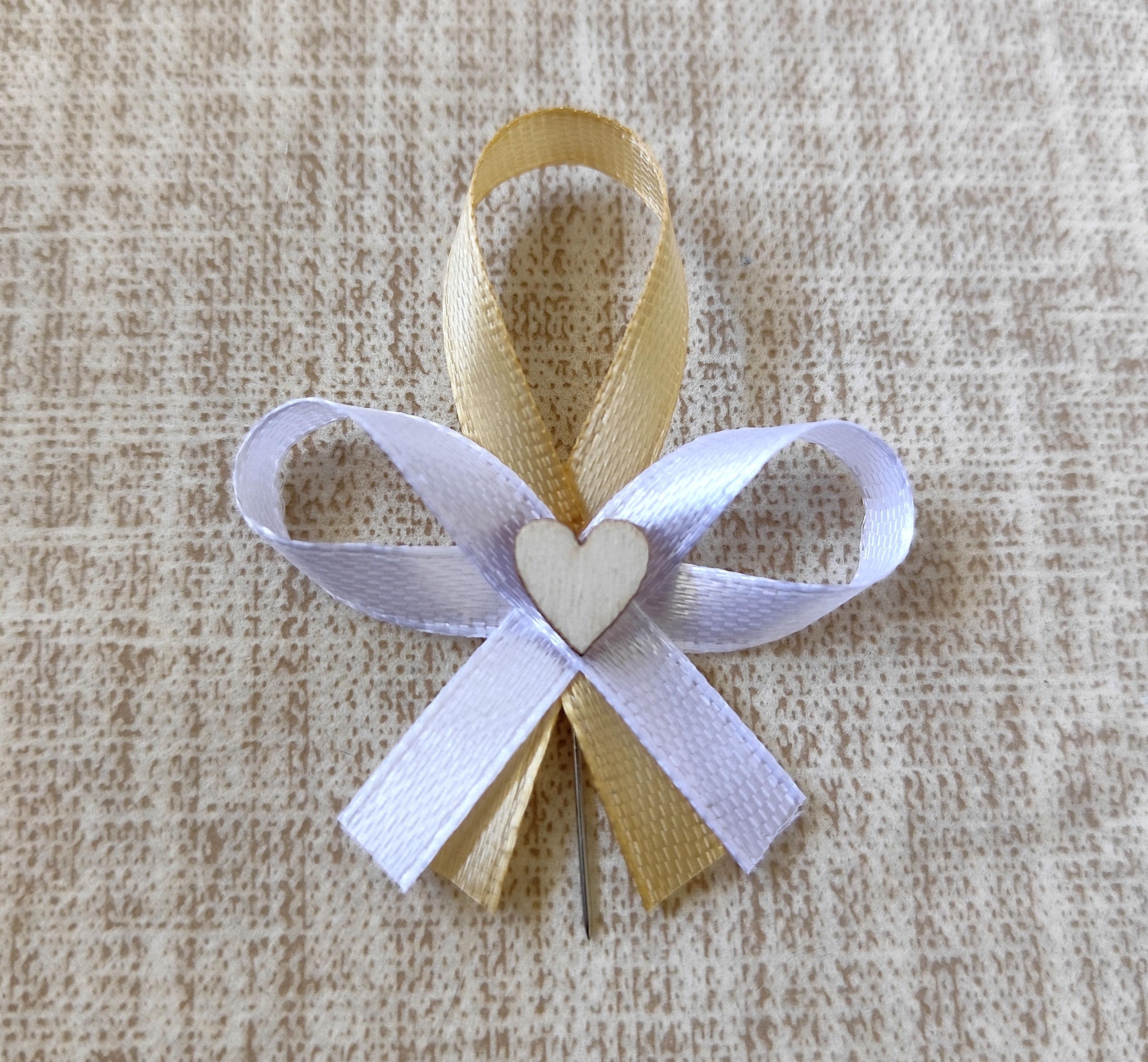 Svadobné pierko pre hostí zlaté s dreveným srdiečkom.