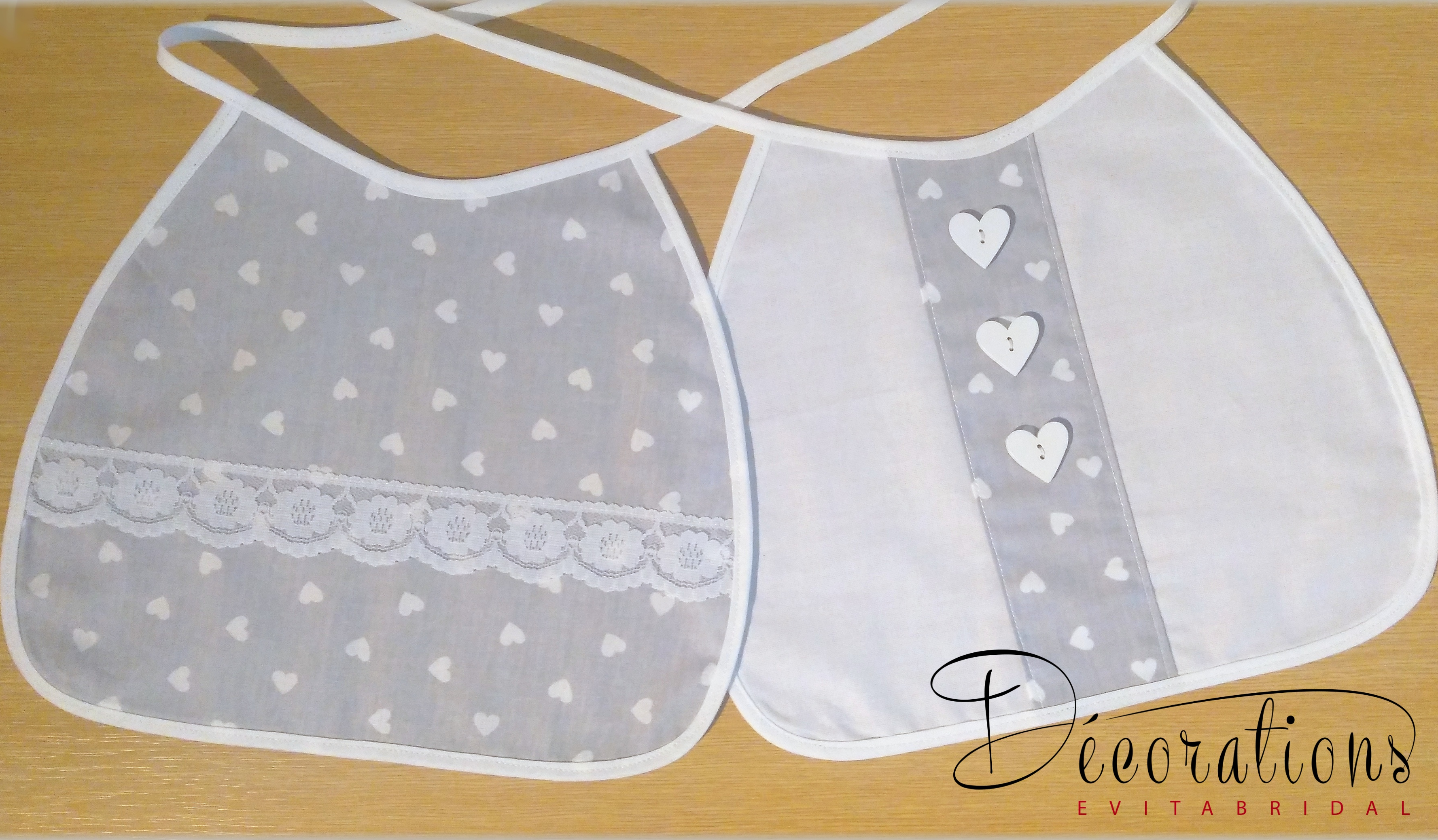Štýlové handmade svadobné podbradníky s motívom srdiečok.